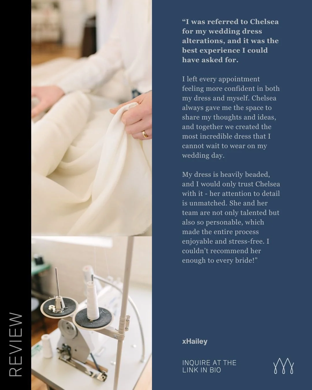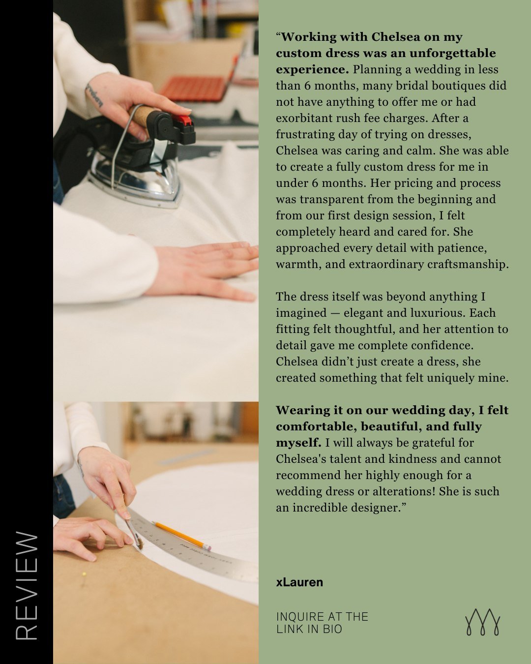 Ready to get the conversation started? Reach out to our team or schedule an appointment to see us at our intimate atelier in the Arts District of Northeast Minneapolis — where all of our gowns are meticulously designed and sewn.
